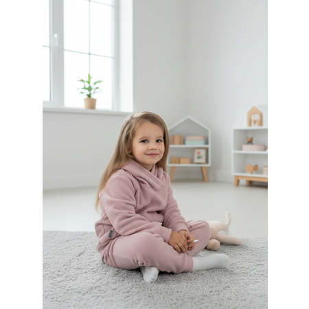 Флисовый костюм для девочки — удобный и тёплый комплект для повседневной носки в прохладное время года. В набор входит толстовка с капюшоном и брюки на резинке, которые создают комфортный образ и не сковывают движения ребёнка. Костюм можно использовать как самостоятельную одежду или как флисовую поддеву под верхнюю одежду в сезон весна, зима, прохладное лето.