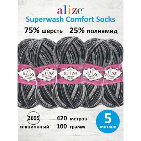 Пряжа Alize теплая для вязания носков Superwash Comfort Socks 100г 420м 5 шт 2695 секционный