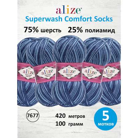 Пряжа ALIZE 'Superwash Comfort Socks' 100гр. 420м. (75% SW шерсть, 25% полиамид), 7677. Теплая пряжа 'Superwash Comfort Socks' специально создана для вязания теплых зимних носков, уютных домашних тапочек или чулок. Подходит также для вязания практичных свитеров, комплектов 'шапочка и шарф' и многого другого. Нить приятна на ощупь, в составе шерсть, обработанная по технологии Superwash, и поэтому она устойчива к износу, отлично переносит машинную стирку. Полиамидное волокно придает дополнительную прочность, чтобы изделия прослужили вам дольше. На выбор предлагаются различные оттенки и цвета, а также секционные расцветки, которые на готовом полотне формируют аккуратный и равномерный узор. Рекомендуемые спицы: №2-4, крючок №1-3. Размер: 100 г / 420 м. Состав: 75% шерсть, 25% полиамид. Внимание! Оттенки пряжи могут незначительно отличаться от представленных на фотографиях. Это зависит от партии товара, настроек экрана и освещения.