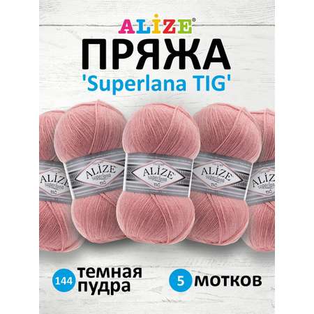 Цена на Пряжа Alize тонкая теплая мягкая Superlana tig шерсть акрил 100 гр 570 м 5 мотков 144 темная пудра - 1072 ₽.