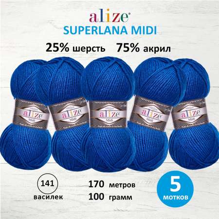 Цена на Пряжа Alize теплая для вязания одежды Superlana Midi 100 гр 170 м 5 мотков 141 василек - 693 ₽.