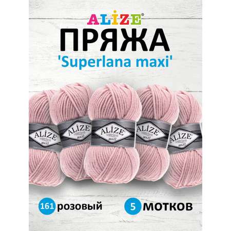 Пряжа Alize полушерстяная мягкая теплая Superlana maxi 100 гр 100 м 5 мотков 161 розовый