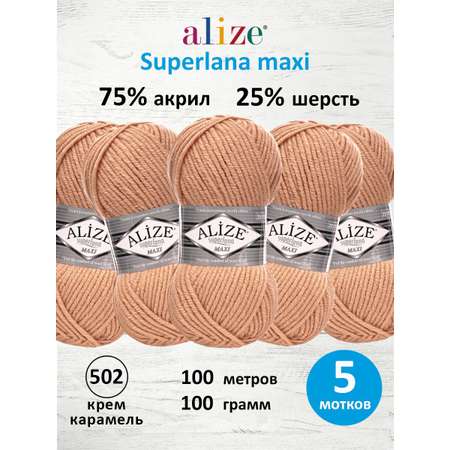 Пряжа Alize полушерстяная мягкая теплая Superlana maxi 100г 100м 5 шт 502 Крем Карамель