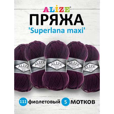 Пряжа Alize полушерстяная мягкая теплая Superlana maxi 100 гр 100 м 5 мотков 111 фиолетовый