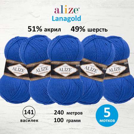 Пряжа Alize полушерстяная мягкая тонкая теплая Lanagold 100 гр 240 м 5 мотков 141 василек