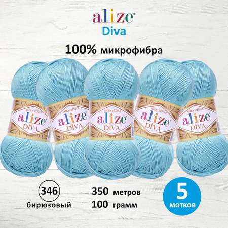 Пряжа Alize для вязания универсальная Diva микрофибра 100 гр 350 м 5 мотков 346 бирюзовый