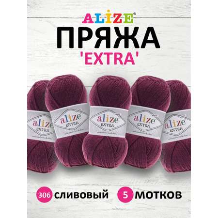 Пряжа Alize универсальная для вязания кардиганов игрушек Extra акрил 100гр 220 м 5 мотков 306 сливовый