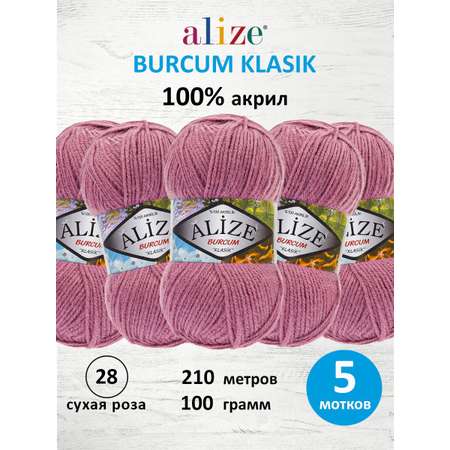 Пряжа Alize демисезонная универсальная акрил Burcum Klasik 100г 210м 5 шт 28 сухая роза
