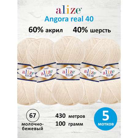 Цена на Пряжа Alize мягкая для вязания Angora real 40 100 гр 430 м 5 мотков 67 молочно-бежевый - 1144 ₽.