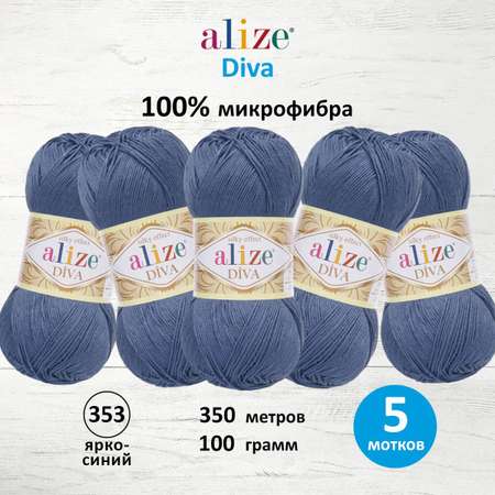 Пряжа Alize для вязания универсальная Diva микрофибра 100 гр 350 м 5 мотков 353 ярко-синий