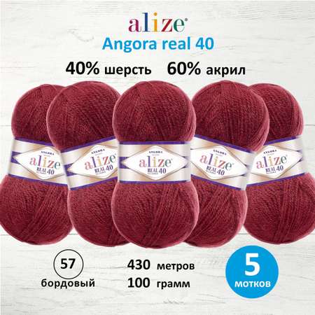 Цена на Пряжа Alize мягкая для вязания теплых вещей Angora real 40 100 гр 430 м 5 мотков 57 бордовый - 1144 ₽.