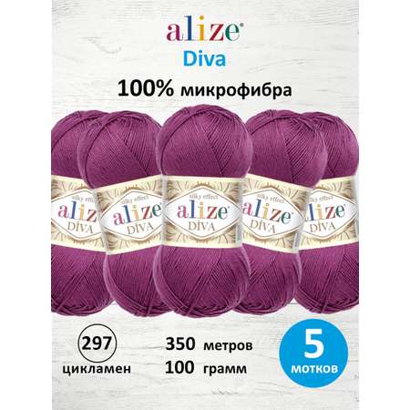 Цена на Пряжа Alize для вязания универсальная легкая Diva микрофибра 100г 350м 5 шт 297 цикламен - 687 ₽.