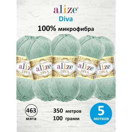 Пряжа Alize для вязания универсальная легкая Diva микрофибра 100 гр 350 м 5 мотков 463 мята