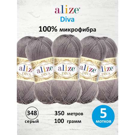 Пряжа Alize для вязания универсальная легкая Diva микрофибра 100 гр 350 м 5 мотков 348 серый