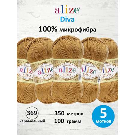 Пряжа Alize для вязания универсальная легкая Diva микрофибра 100г 350м 5 шт 369 карамельный