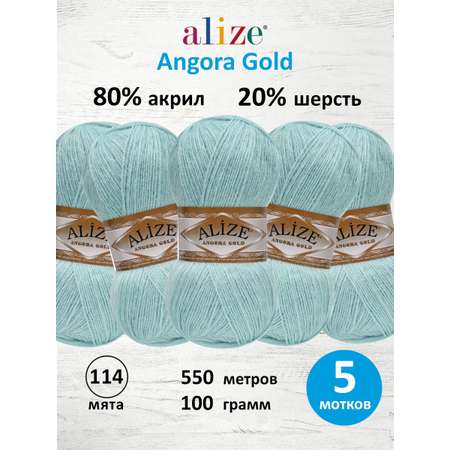 Пряжа Alize мягкая теплая для шарфов кардиганов Angora Gold 100 гр 550 м 5 мотков 114 мята