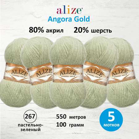 Цена на Пряжа Alize для шарфов кардиганов Angora Gold 100 г 550 м 5 мотков 267 пастельно-зеленый - 708 ₽.