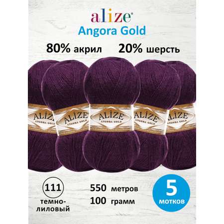 Пряжа Alize мягкая теплая для шарфов кардиганов Angora Gold 100г 550м 5 шт 111 т.лиловый