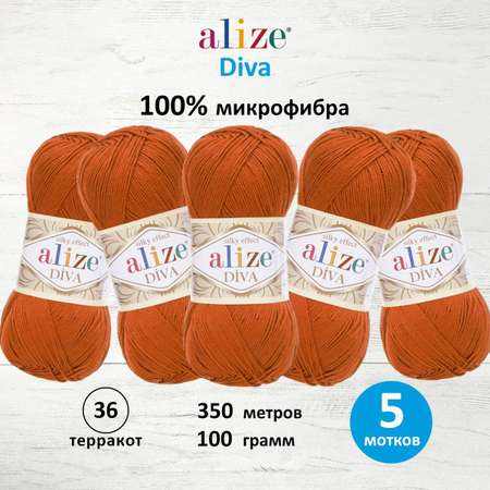 Пряжа Alize для вязания универсальная легкая Diva микрофибра 100г 350 м 5 мотков 36 терракот
