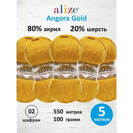 Пряжа Alize мягкая теплая для шарфов кардиганов Angora Gold 100 гр 550 м 5 мотков 02 шафран