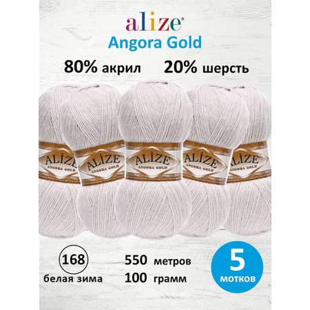 Пряжа Alize мягкая теплая для шарфов кардиганов Angora Gold 100г 550м 5 шт 168 белая зима
