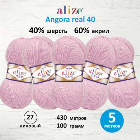 Пряжа Alize мягкая для вязания Angora real 40 100 гр 430 м 5 мотков 27 лиловый