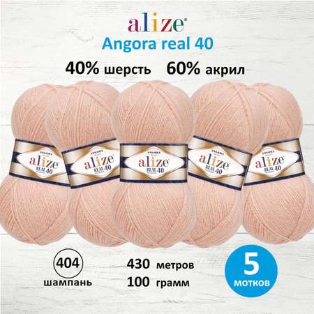 Пряжа Alize мягкая для вязания Angora real 40 100 гр 430 м 5 мотков 404 шампань
