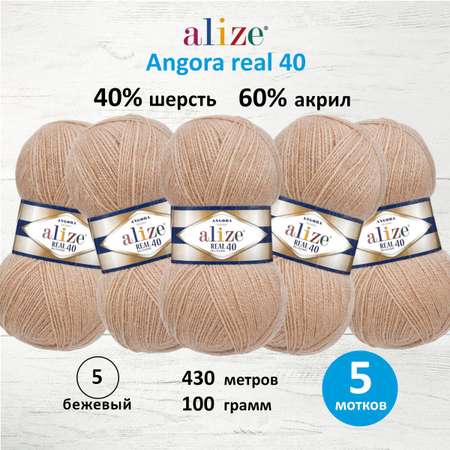 Цена на Пряжа Alize мягкая для вязания Angora real 40 100 гр 430 м 5 мотков 05 бежевый - 1144 ₽.
