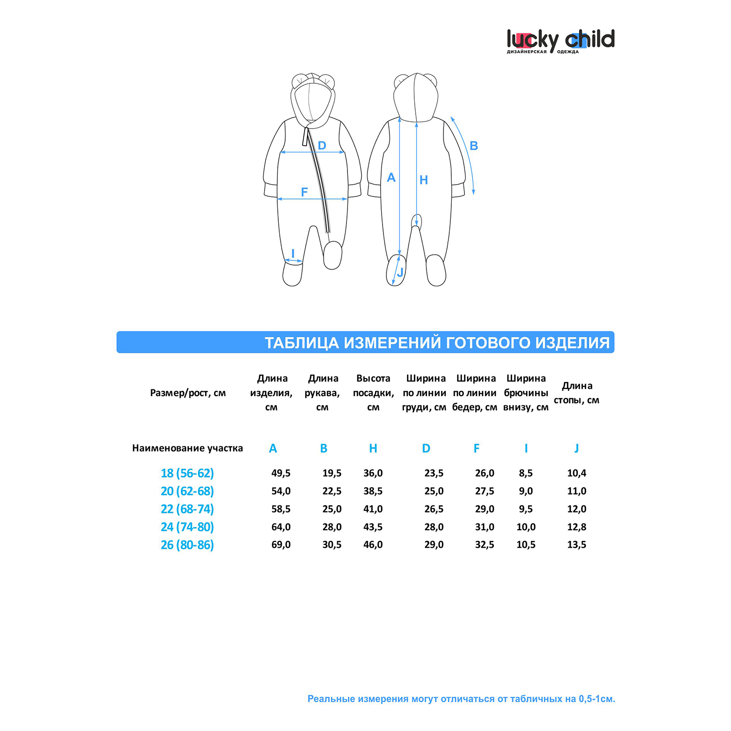 Комбинезон для девочки, мальчика из трикотажного полотна (футер с начесом "ФРЧА", 100%хлопок), со смещенной застежкой на молнию, с капюшоном. С изнаночной стороны застежка-молния закрыта планкой. На застежке-молнии - резиновый пуллер. На правой полочке, вдоль застежки-молнии - принт. Спинка цельнокроеная. Комбинезон с длинными, одношовными рукавами, с притачными манжетами из трикотажного полотна "кашкорсе"/рибана с лайкрой (95%хлопок, 5%эластан). Капюшон одношовный, с подкладкой из основного полотна. Части капюшона с вытачкой, в которую вставлены уши. На ушах заложены встречные складки. Детали ушей обтачаны. Детский комбинезон утепленный - это прекрасная вещь, которая совмещает в себе идеальное сочетание моды и удобства. Флисовый комбинезон с начесом подходит для малышей и детей постарше. Комбинезон для мальчика, девочки выполнен с застежкой на молнию, что позволит легко одевать и снимать его. С изнаночной стороны застежка-молния закрыта планкой. Несъемный капюшон защищает голову вашего малыша. Модный комбинезон для девочки, мальчика с небольшим начесом с изнаночной стороны и с карманами незаменим в любое время года. Комбез для детей с длинными рукавами отлично подходит для прогулки, в детский сад, на праздник и для повседневной носки. Широкие манжеты на рукавах и штанинах надежно защищают от ветра и холода, обеспечивают хорошую посадку. Комбинезон можно использовать как спортивный комплект или как поддеву под верхнюю одежду. При соблюдении правил ухода на ярлыке, наша одежда прослужит вам долго и сохранит свой изначальный вид. Подбирайте трендовые комбинезоны для новорожденных и детей постарше из наших коллекций и дарите своим детям незабываемые образы от Fashion - пространства Лаки Чайлд! Lucky Child - российский бренд детской одежды, производящий детские вещи по высочайшим стандартам качества. Одежда для новорожденных производится из ткани качества "пенье" (100% хлопок самого высокого качества). Вещи изготовлены из гипоаллергенных материалов и используются дышащие принты. Свыше 10 лет мы одеваем более 1 млн детей ежегодно. Дарите своим малышам лучшее С любовью и заботой бренд Lucky Child.
