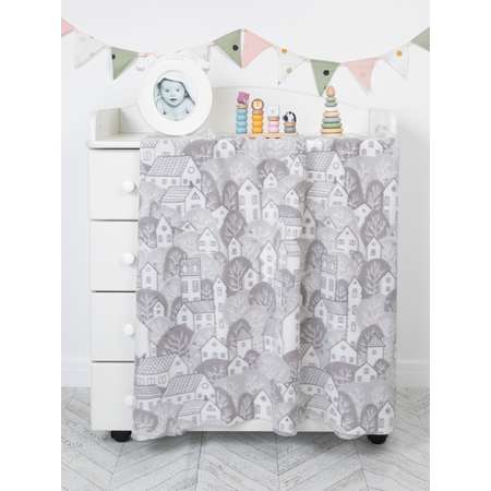 Плед флисовый теплый мягкий Baby Nice Домики 100х118 серый
