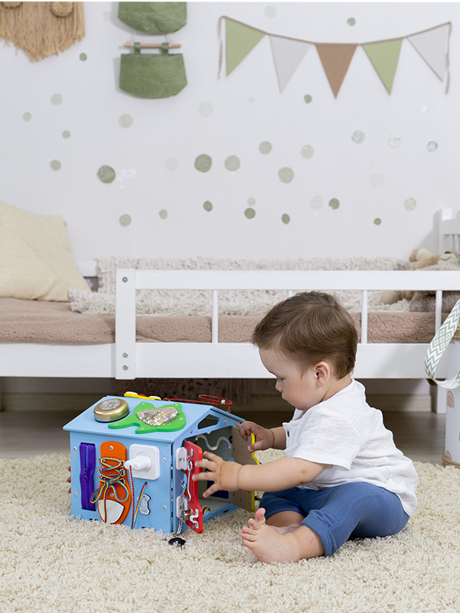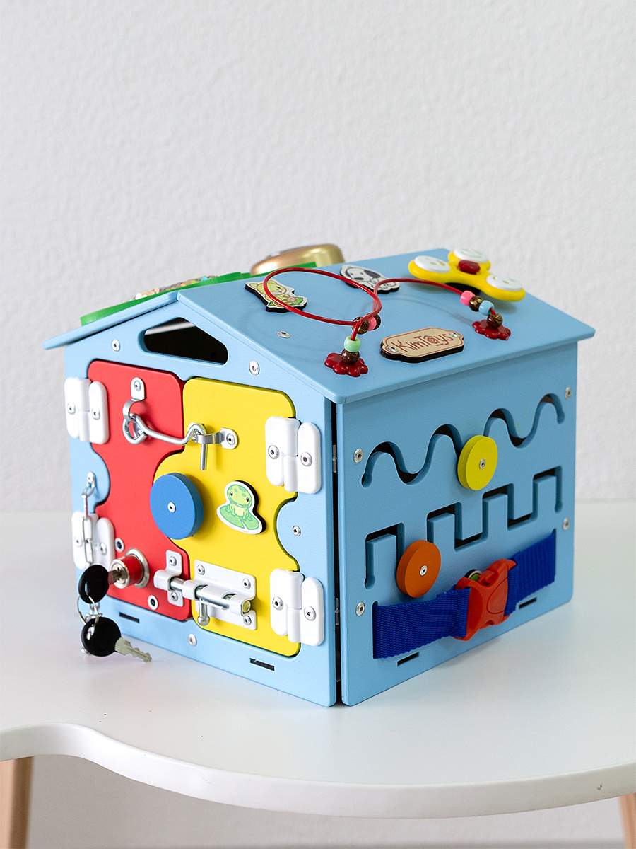 Бизиборд со светом - это развивающий игровой центр. Бизидом или бизиборд домик для мальчиков и девочек предназначен для развития моторики, логики, мышления, обучения бытовым навыкам. Набор игр: дверки, крючок, ручка, шпингалет , встроенный замок с ключиком , молния, шнуровка, пластиковая застежка, лабиринт-волна , лабиринт- квадрат, спиннер деревянн, светильник (батарейки вставлены), рыбка с переливающимися пайетками, счеты, розетка с вилкой, роликовое колесо, шестеренки крутящиеся с бисером внутри, изображения животных. В домике есть пол, поверхность покрыта лаком, можно протирать влажной салфеткой. Цвет элементов (крутилка, молния, шнурки) могут отличаться от образца. Состав: фанера, МДФ. Внимание - фанера имеет неоднородную структуру, где визуально видны линии, вставки - это НЕ брак, а особенности дерева и производства фанеры.