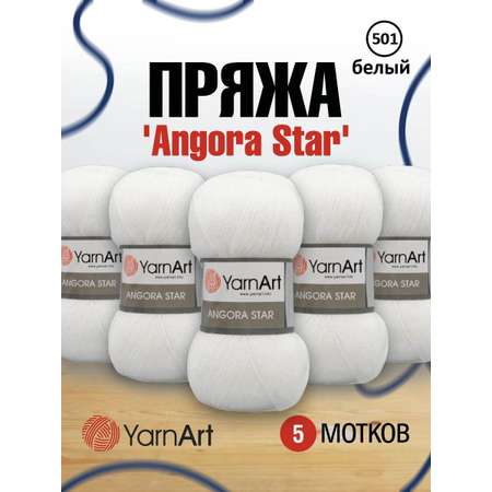 Пряжа YarnArt Angora Star тонкая полушерстяная 100 г 500 м 501 белый 5 мотков