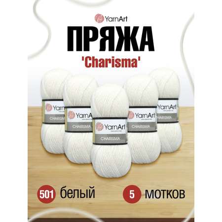 Цена на Пряжа YarnArt Charisma полушерстяная для зимних вещей 100 г 200 м 501 белый 5 мотков - 1281 ₽.