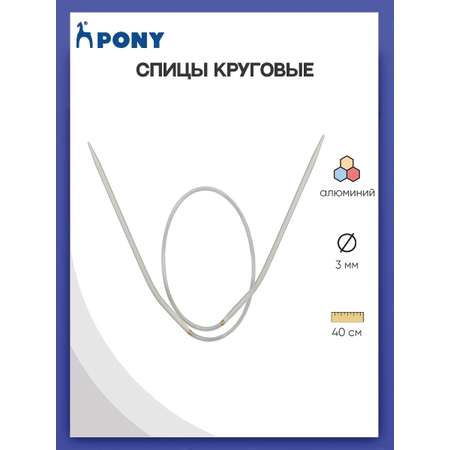 Спицы круговые Pony для вязания алюминиевые с пластиковым тросиком 3 мм 40 см 47205