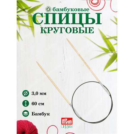 Спицы круговые Prym бамбуковые с пластиковым тросиком 3 мм 60 см 1 шт 222514