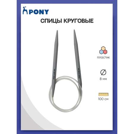 Спицы круговые Pony для вязания пластиковые с пластиковым тросиком 8 мм 100 см 52267