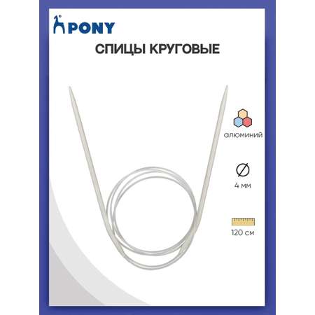 Спицы круговые Pony для вязания алюминиевые с пластиковым тросиком 4 мм 120 см 50409