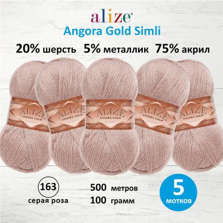 Цена на Пряжа Alize для шарфов полушерсть Angora Gold Simli 100 гр 500 м 5 мотков 163 серая роза - 1165 ₽.