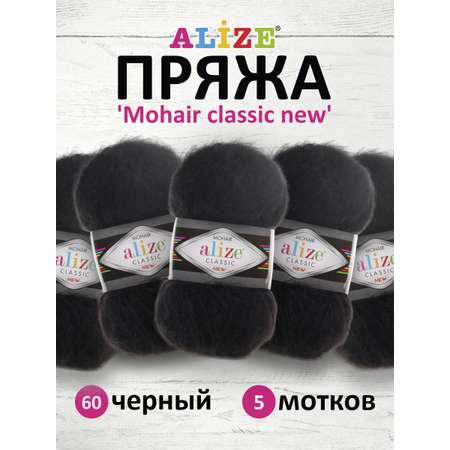 Пряжа Alize полушерстяная Mohair classic new 100 гр 200 м 5 мотков 60 черный