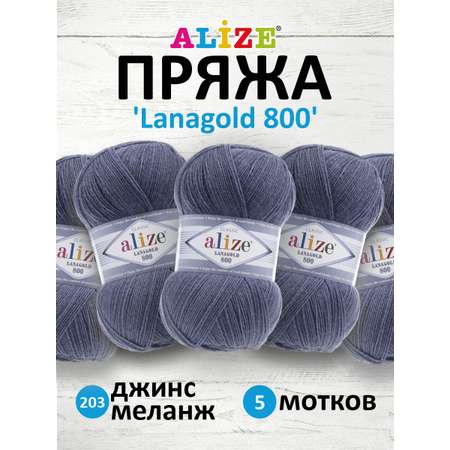 Пряжа Alize полушерстяная Lanagold 800 100 гр 730 м 5 мотков 203 джинс меланж