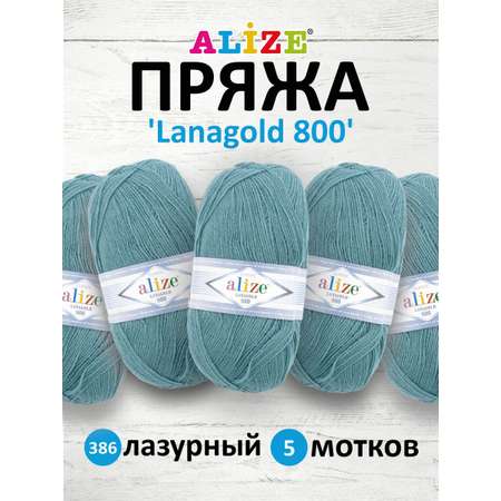 Пряжа Alize полушерстяная Lanagold 800 100 гр 730 м 5 мотков 386 лазурный