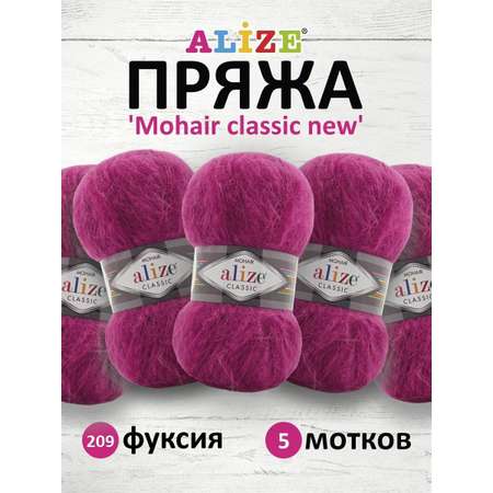 Пряжа Alize полушерстяная Mohair classic new 100 гр 200 м 5 мотков 209 фуксия