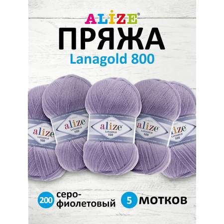 Пряжа Alize полушерстяная Lanagold 800 100 гр 730 м 5 мотков 200 серо-фиолетовый