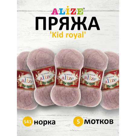 Пряжа Alize полушерстяная с длинным ворсом Kid royal 50 гр 500 м 5 мотков 541 норка