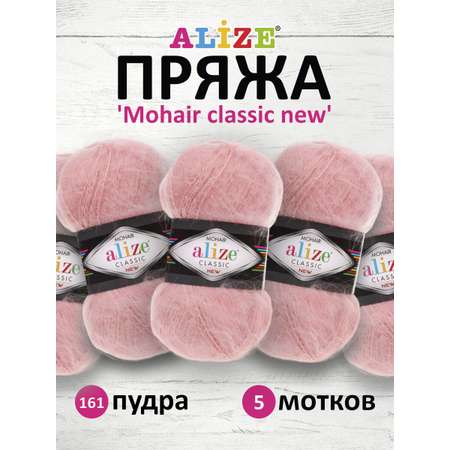 Цена на Пряжа Alize полушерстяная Mohair classic new 100 гр 200 м 5 мотков 161 пудра - 1304 ₽.
