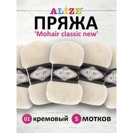 Цена на Пряжа Alize полушерстяная Mohair classic new 100 гр 200 м 5 мотков 01 кремовый - 2026 ₽.