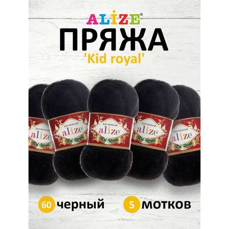 Цена на Пряжа Alize полушерстяная с длинным ворсом Kid royal 50 гр 500 м 5 мотков 60 черный - 1065 ₽.