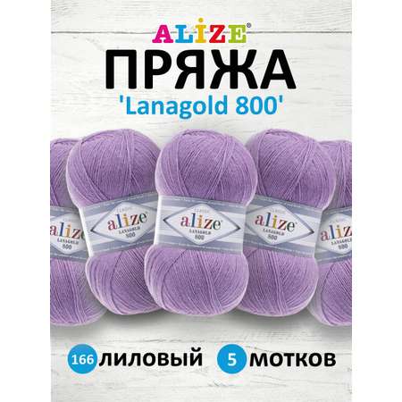 Цена на Пряжа Alize полушерстяная Lanagold 800 100 гр 730 м 5 мотков 166 лиловый - 1296 ₽.