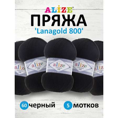 Цена на Пряжа Alize полушерстяная Lanagold 800 100 гр 730 м 5 мотков 60 черный - 861 ₽.