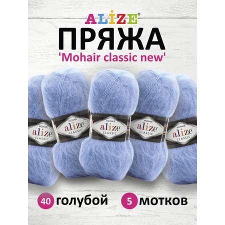 Цена на Пряжа Alize полушерстяная Mohair classic new 100 гр 200 м 5 мотков 40 голубой - 2026 ₽.